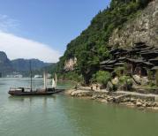宜昌最后一天去游玩三峡人家。早上从酒店出来的时候天气不错,在夷陵广场坐B10-1旅游专线去三峡人家景区,路上开始下起小雨。在景区下车,买了门票和船票一共180元,从攻略看扶梯30元没有必要。坐船首先到终点站游玩龙进溪,也就是溪边人家,这个景点环境优美,满面翠绿,溪水清澈,沿着溪流缓缓前行,如果天气热,是很好的避暑圣地,到了瀑布就是尽头,回来到哭嫁的表演地,休息一下,赶上12点的表演,满足特色的表演,趣味性十足,值得一看。看完表演,继续往巴王寨方向前进,上山的道路不太好走,雨时大时小,好辛苦,一路游玩了巴王宫,巴王寨,最后到山顶看了灯影石。因为雨天的原因,俯视长江的光线不好影响了拍照效果,但是云