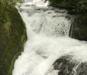 刚进香溪源景区,扑面而来的水汽顿时让温度下降了10度,一阵清凉沁入身心。赤足涉水,刺骨冰寒,此刻若有一瓶啤酒,放入水中片刻,取出来定是冰啤了。溯溪而上,一路阴翳,偶有几处小桥亭台,似有几分古韵。上到顶端,可见一潭清池,水深三、四尺,清澈见底,池边一巨石,上书香溪源,想必这就是溪流的源头了。池水不大,而水流磅礴,气势浩大,飞流直下,滔滔不绝。自下而上,又由上返下,时不过三刻,却映像深刻,精致小景,如入仙境。