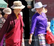 大昭寺外面是拉萨的老城区----八廓街。八廓街引又名八角街,是拉萨著名的转经道和商业中心,较完整地保存了古城的传统面貌和居住方式。八廓街原街道只是单一围绕大昭寺的转经道,藏族人称为“圣路”。现逐渐扩展为围绕大昭寺周围的大片旧式老街区。 八廓街是传统和现代文化融合的小镇,你可以看到藏族服饰,也可以看到现代潮流。 我国八十年代起执行严格的计划生育政策,一对夫妇只允许生育一胎。但对西藏等少数民族却不受限制,所以可以看到许多藏族妇女拖家带口,带着几个小孩。 老年人根深蒂固,还保持传统文化。