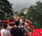 在去西安华山之前有稍微看了一下攻略,幸好许多人建议西上北下行程比较好走,实际走过确实如此,我们刚下飞机由擕程人员接待等待送酒店车,当时在网站没买行程当下听介绍而买,虽然价格比网站多一点点但还可接受,只是併车时间太長,早上8点上车到扣除吃饭时间30分鐘实际到山上爬时已经下午2:20左右,攻略上有人建议搭乘高铁其实也是不错选择,华山门票虽高但值得,我们五峰爬完花了約4小時左右,但非常累水,食物多少帶一些,風景非常壯觀⋯⋯