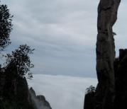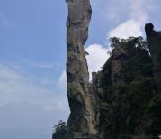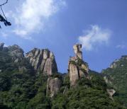 三清山风景区有一块叫做巨蟒出山的石柱,巨蟒出山是由风化和重力崩解作用而形成的巨型花岗岩石柱,峰身上有数道横断裂痕,但经过亿万年风雨,依然屹立不倒。顶部扁平,颈部稍细,最细处直径约7米,状极突兀,形似一硕大蟒蛇破山而出,直欲腾空而去;在海拔约1200米的深山幽谷中一瘦奇石峰横空出世,如擎天玉柱昂首屹立,扶摇直上,耸入云端。垂直高度128米,峰端略粗形似蟒头,峰腰纤细有若蛇身,云飞雾绕之时,蟒头窜动,蛇身微摇,形似一条巨大蟒龙,吞云吐雾,撼天动地,破地出山,昂然挺拔,直欲腾空冲天而去,令人叹为观止,唏嘘不已。