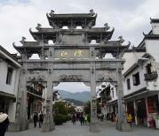屯溪老街入口处的老街第一楼 美食人家必去 臭鳜鱼 葛粉圆子 毛豆腐 老街里主要是文房四宝.文房四宝 琴棋书画 喝茶赏戏 美食美景 古代和现代完美结合。