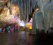 隐水洞还不错,很轻松的景点!洞内通过灯光照射很漂亮,分三段,第一段游船,通过船带你游行,坐两次船!小朋友很喜欢;第二段步行,上下楼梯有一部分,还算平坦,沿路有工作人员。有许多经典景点可以拍照!第三段火车,小火车带你穿行,有点像游乐场的森林小火车哈哈哈……出洞后5元一人坐车到进门的停车场!