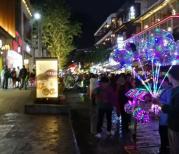 晚上的阳朔西街是非常的热闹,我去的时候也是晚上,灯火通明,街道两边有不同的商铺。在西街最出名的就莫过于啤酒鱼,很多刘大姐,王大姐的店面很多。远处是桂林的山水,非常漂亮。