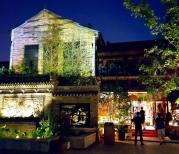 韩城古香古色的石板路中间有一道青色的青石板盖板,沿街百年老店,木门木窗,夜晚的灯笼一下子让你回到了古老的韩城,使游人流连往返美食街,古老的戏台,金塔公园,大美韩城我爱你!
