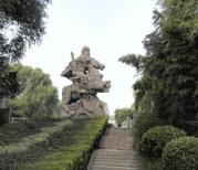 灞陵桥相传是曹操送关羽之处。公园门口牌楼上的匾上撰写着“关公辞曹处”。进门是一座雕塑,描述关羽辞曹的场景,背后是曹操的话:“不忘故主,来去明白,真丈夫也,汝等皆当效之”。沿路而行,到青梅亭,再现了曹操与刘备青梅煮酒论英雄的场景。再行至灞陵桥,是依据“关王辞曹操之图”新建的石桥。桥右边有明末将领左良玉题写的“汉关帝挑袍处”石碑,左边为“辞曹书”和“关王辞曹操之图”石碑。公园尽头是关帝庙,此关帝庙是全国唯一的关羽与曹操合殿的庙宇,在庙中汉寿亭侯大殿内,中间为关羽读春秋塑像,右为曹操礼送关羽的塑像,在为甘糜二夫人塑停。大殿后的春秋阁为两层,下层为关羽读春秋的塑像,上层则为关羽为关圣帝的塑像,对关羽的