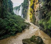 到达赤水大瀑布的时候就明显感觉到空气中很多瀑布击起的水雾,又细又密很温柔,但是到了瀑布跟前,由于落差很大击起的水雾直接行成一股强风,是直接可以把头发还有衣服打湿的,自备雨衣很重要啊。从上面下去到瀑布的小路有点陡,但是各式植被茂盛,郁郁葱葱,美得像一幅画,山间也非常凉快,但是一定要注意安全!