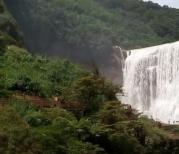 赤水大瀑布距离赤水城城区约三十公里,可能是地理原因地质构造,云贵高原西部瀑的形状都差不多,赤水瀑布的气势可以和黄果树瀑布媲美,只是没有后者的宽度。