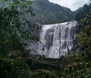赤水大瀑布是赤水旅游景区的重点之一,门票与佛光岩景区相同(门票90+观光车25,共115元)。赤水河谷旅游公路把每个美景串联起来:赤水大瀑布、丙安古镇、佛光岩、燕子岩、四洞沟景区等,路况不错,沿路景色很美。每个景区的观光车都是有必要购买的,景点与大门都有一定距离,乘坐观光车才能节省体力去登山观景,否则会很辛苦。赤水大瀑布景区包括大瀑布(也叫十丈洞瀑布)和美人梳瀑布,下观光车后,建议步行下到沟底去看大瀑布,沿路走台阶,有树荫,大约半小时可达大瀑布,不费体力。大瀑布高约86米,比黄果树大瀑布还高8米,水量很大,气势恢宏,蔚为壮观。还可沿栈道及路标去看美人梳瀑布,有一定距离,折返后回到大瀑布附近乘坐