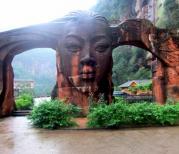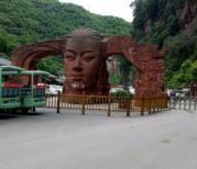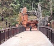 赤水大瀑布又称十丈洞大瀑布,是国家4A景区。景区大门全部用丹霞石雕凿砌建,正面是老人头像,背面是美女头像。 正逢冬季游优惠期,凭身份证免门票,检票处可以直接刷身份证进入。我们选择步行进入,观光车出来的方式游览,全程大概3小时左右。 从步行栈道进入,经过奇兵古道,可到美人梳瀑布。中间沿崖壁的栈道有损毁,有一小段是要走到马路上再沿指示牌下去的。美人梳瀑布温婉而精致,可以在此驻留一会,拍拍照之类的。这是坐观光车会错过的一个景致。 接着,沿栈道一路走走停停,欣赏欣赏风景,拍拍照,很快就到大瀑布的。远观大瀑布会看到一大一小的两块丹霞奇石组合而成的神龟形象,对其守望着,这就是“神龟观瀑”。走到大瀑布底下水