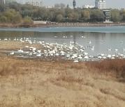 天鹅湖国家湿地公园位于三门峡市区范围,很大的一片湿地公园,规划面积有一万多亩,每年西伯利亚的天鹅都飞到这里过冬,因为时间合适前来参观,目测大概有一两千只,听说过段时间会更多,特别壮观。这里还是国家级摄影基地,有许多摄影发烧友在此流连。
