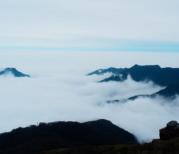 梵净山多雾,雾大的时候,能见度不超过10米,那时候就没有什么意思了。所以要来梵净山来,首先要关注天气,最好是晴天或者多云的时候来。 如果天气不错,建议第一天到山下的酒店住一晚上。我们住的是凤德客栈,老板人很好,我们的一个双肩包坏了,她还借了我们一个,做菜也特别好吃。第二天的时候,我们大概6点50出门,走到售票厅大概7点十分,这时候基本上没有什么人。我们买的是双程的缆车,假设体力不错同时时间不紧,可以试试爬山,爬到金顶大概需要5-6小时吧,这时体力消耗会非常大,最好坐缆车下山。 下了缆车,不妨往蘑菇石和老金顶方向走。我们去的比较早,太阳刚刚升起来不久,天边的金光透过厚重的云层,映着远处的群山,其