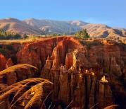元谋土林形态多以城堡状、屏风状、帘状、柱状为主。各种形态的土柱错落纵横,最高达42米,颜色有红色、黄色、白色、褐色等。远远望去,土林千峰林立,沟壑纵横,荒凉粗犷,像一座废弃的城堡,又像一组组工程巨大的艺术群雕。