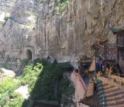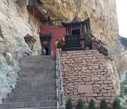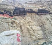 悬空寺规模不大,但是整座寺庙,仅用胳膊粗细(一般女士胳膊)的松树杆支撑在悬崖上,真心惊险。走在悬空寺的道路上,看看眼前和头顶,偶尔看看山下觉得中国人民,尤其是一心修行的古人,真的很赞,无论是体力、智力、还是坚持的那份心力,真心令人敬佩。不过在感叹的同时,建议大家千万不要多去看那些支撑寺庙的细松木,因为,你会越看越害怕,越看越腿软的。那些支撑整座寺庙的松木,很多都只有一半或者少半底面,支在崖壁的突出小石头上,看得时候,仿佛脚下的路都在不易察觉的抖动着,随时要支不住掉下去的感觉啊!越看越怕啊!!! 而寺庙的殿里居然还有两层,这是细树干小石块支撑着的两层殿堂啊,真心腿软啊!你不腿软?自己走过了才知道