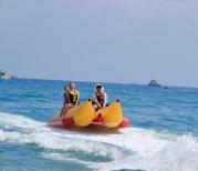 去亚龙湾的那天浪比较大,娱乐项目挺多。玩了摩托艇,飞鱼,香蕉船,海边有,有偿拍照的,效果还不错,不能刷卡,不能微信支付,只能现金,淡水冲澡要20一位,水温挺热的。下面上花钱拍的照片, 感觉还不错~