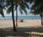 三亚湾离市区近,如果要去南山寺,天涯海角,第一市场,还是住在三亚湾方便一点,房价也相对便宜很多。三亚湾的沙滩比不上亚龙湾,沙粒比较粗,水质也相对差一点, 但风景也是不错滴。