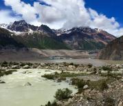 来古冰川的名字来源于紧邻冰川的一个藏族小村落——来古村。周围遍布美丽的湖泊与宏伟的雪峰,是西藏已知的面积最大和最宽的冰川。