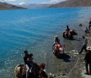 羊卓雍措是一个去西藏游玩必去的景点,在观景台上向下看羊湖美如一条丝带弯弯的流淌到远方,顺着公路可以到达湖边,与圣湖零距离接触,骑牦牛拍照是要收钱的!去羊湖游玩最好选择晴天,那样才能看见羊湖最美的风景!