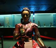 西藏博物馆各展厅内展示有丰富的馆藏珍品,诸如多种质地和造型的佛、菩萨人物造像,历代蘸金粉、银粉、珊瑚粉等手写的藏文典籍,历代中央政府颁给大活佛的金印,金瓶掣签仪时使用的金瓶和玉签,五彩纷呈的唐卡,各种乐器、法器,具有鲜明的民族特色的手工艺品,别有风格的陶器等等,从西藏的历史、文化、艺术、宗教、民俗等方面向观众直观地展示出藏民族独具魅力的灿烂文化和悠久历史。