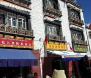 八廓街这是一条重要的商业街,随便一个档口,不管多少平方,转手费都是一百万起。 这边林立着藏式建筑的商铺,卖一些藏区特色的衣服鞋帽围巾,唐卡蜜蜡宝石纪念品,还有一些有名的餐馆,光明港琼甜茶馆,雪域餐厅,刚吉餐厅都在这条街上,来来往往的游客很多,这里很热闹。