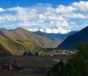 新都桥镇之声名鹊起,缘于其地缘优势,西出雅江、理塘折南直走稻城亚丁,北上经塔公、八美折东直抵丹巴,其一也;名盛其山峦之雄浑、天田野之广袤、村落之雅致的摄影天堂,其二也。 而今天蓝如玉,云白似絮。极目远眺,贡嘎雪山赫然在望;躬身俯瞰,草甸丰茂,有臧舍镶嵌,牛马散落。