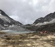 牛奶湖——我九点到洛绒牛场的,没有抢到马~牛奶海来回爬了6个多小时~带着五十六岁的爸妈爬的~两位老人撑下来了。天气不是很好,风景还是不错的,建议以后如果遇上天气不好,爬一半就好了!路上都是泥泞的路,穿了鞋套会打滑!登山鞋就不要鞋套了,回来洗鞋就好了