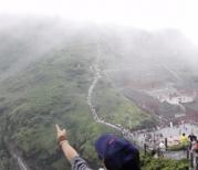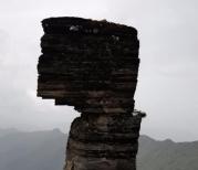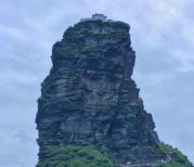 一大早来到梵净山售票处,被告之山上有雷雨,暂停售票,真担心今天的行程泡汤了。等了大半个小时,终于可以售票了,乘上了景区旅游车,再换乘揽车,终于到山上了。有两条登山路线,一条先到旧金顶,一条到红云金顶。我们选择了人少的一条,向红云金顶出发。顺着石阶拾级而上,经过万宝岩,来到了镇国寺,寺内的工作人员建议我们还是先登远的旧金顶,再上近的红云金顶。看来我们应该随大流往旧金顶的方向登山了。上山的路越走越艰辛,沿途休息了好多次。越向山顶路越险阻,真庆幸选择了坐揽车上山,留了体力登后面这段险峰,有的路段真有点怕,有人问工作人员,是否这是最险峰,工作人员答不是,红云金顶比这边险要,心里真怕登不上顶峰。后来凭着
