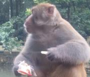 到了贵阳听说黔灵山公园可以看到猴子和贵阳市的夜景。于是特意挑了黄昏时分上山,这样既可以看到猴子,又可以在晚上看到夜景。天公作美没有下雨是一个晴天,如愿以偿地在公园里看到了猴子,虽然只有一个猴子,也满足了,这个猴子貌似不怕人,还会向行人索要食物…