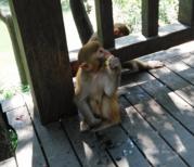 到贵阳第一件事就是来黔灵山公园 ,目的很简单~看猴走过麒麟洞 ,路边三三两两的小猴悠哉悠哉地晒着太阳, 看着来往的游客 ,看似漫不经心 ,实则观察细微。 哪人有一点小动作像是拿食物 ,立刻有小猴跳过来索要 ,你喂它食物 ,它可以站起来拿, 当然你告诉他没有, 它就马上跑开, 不再讨扰, 再往上走临近动物园门口 ,大批的猕猴出现了 。山上路上群猴互动, 上蹿下跳, 场面尤为壮观, 此时喂食物风险很大 ,喂一只猴子的时候, 可能被群猴围攻 ,当然它们只是抢食物 。对钱财没兴趣 ,也不会轻易伤人, 山上的动物园中规中矩 ,没什么新意, 简单转转 ,还是下来跟小猴玩比较开心。