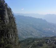 恩施市区航空路汽车站有到大峡谷的班车,班次很多。一个半小时到景区游客中心,那里有许多农家乐拉客的,当然保险点在携程上订好住宿为好。觉得住在女儿寨最好。我住在女儿寨下面的客栈游多多,条件没有女儿寨的好,远了一点点。但是,饭菜不错,特别是四楼的平台风景大赞! 一早到游客中心拿票,乘坐景区交通车先去云龙地缝。沿着栈桥阶梯贴着深谷崖壁往下走,寒气逼人,不时被飞溅下来的瀑布泼洒到。。 往上因为垂直电梯在改造吧没开,爬上去则汗水淋漓,气喘吁吁。 我买了索道票可以省力些,走在绝壁长廊上,看绵延不绝的群山,赏青绿黄灿的田野,真不枉此行!
