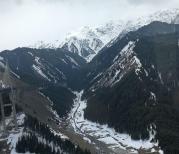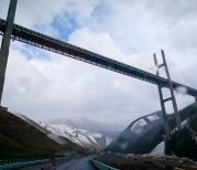 果子沟大桥全称果子沟双塔双索面钢桁梁斜拉桥,桥梁全长700米,桥面距谷底净高达200米,果子沟大桥作为新疆第一座斜拉桥、第一高桥,是新疆最大最重要的桥梁