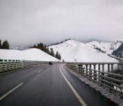 果子沟大桥——位于伊犁,我们从那拉提草原去赛里木湖的路上,经过果子沟。整个沟里有河滩,有山坡,长满了野生的苹果和山杏,随处可看到牧民放牧,成群的羊儿马儿在悠闲的吃着草,今年虽然已是3月中,一场倒春寒这里刚刚下过雪,远处山上依然被白雪覆盖着,一些植物开始有复苏的迹象,这里马上就要春暖花开了,真不愧说这里有“小瑞士”之称,非常漂亮。果子沟大桥就坐落于这天山峡谷之上,是新疆的第一座斜拉式高桥,它集新技术、新结构、新工艺、新设备“四新”于一身,是新疆公路建设史上一次重大突破。是新疆最重要的桥梁,同时也是一道风景。