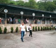 早上逛完磁器口想坐公交车过去渣滓洞,端午去的,但路上塞车严重,而且公交车站根本找不到。最后只有叫了路边的黑车,20块钱一位,坐满开车。黑车的阿姨把我们拉到了后山,说是这边进去不用排队,事实证明这边后门真的人不多,但是后山的路其实并不好走,而且容易走错,我们幸运地遇到了一个当地人一直把我们领到渣滓洞门口才没有迷路。渣滓洞是免门票的,是国民党时期关押异见人士的监狱,江姐,小萝卜头就是被关在这里。里面扫一扫微信交钱可以有讲解,但我弄了好久来来回回都是讲一样的东西。逛一圈从正门走出来就是公交车站,也有穿梭到白公馆等其他红村经典的巴士。