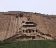 麦积山石窟》伐尽南山十万薪,千锤亿钻刻岩巅。两百窟龛绝壁凿,万尊佛像伴飞仙。仰望石窟高百米,凌空栈道架云间。艺术宝库惊天下,巧匠能工绣锦天。