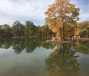 看金塔胡杨林就是要秋天去特别美,胡杨树的叶子由绿慢慢变成金黄色,在蓝天白云下的衬托下,金色的胡杨和倒影美的无法形容,只是黄的时间也就半个月左右,所以看的人也很多