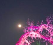 额济纳怪树林景区有大片干枯的胡杨,是拍日落的好地方。晚上彩色射灯打在胡杨上五彩斑斓,像海底七彩的珊瑚。