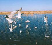 居延海要早上5点钟就进去,看着太阳慢慢从湖边升起,水鸭慢慢游荡,芦苇变成了金色,海鸟成群地飞起,噢,太美了。