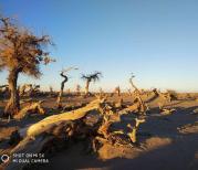 额济纳胡杨林由于自然因素,大片枯死的胡杨树东倒西歪,神态各异,其奇异的造型给人以死一般的沉默和童话世界中的仙境奇观