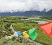 海拔5013米的米拉山口。站在山口,山风劲吹,蓝天白云下,五彩经幡在大地与苍穹之间飘荡摇曳,连地接天,将藏民们虔诚的愿望传达上苍神灵。