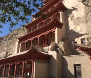 莫高窟,俗称千佛洞,位于甘肃敦煌市东南25公里的大泉沟东岸,介于三危山和鸣沙山之间,南北长约1610多米。它像一颗璀璨的明珠,镶嵌在碧天黄沙,贯通中外文化交流和友好往来的古丝绸之路上。 据唐代碑文记载,莫高窟建于前秦建元二年(公元366年)。传说有个叫乐尊的和尚云游到此,忽然看到东边的三危山金光闪闪,迎着夕阳,仿佛有成千上万的佛在金光中显现,便认为这里是佛家圣地,遂募钱开凿了第一个石窟。消息传开,来往于丝绸之路的商旅、官员纷纷在此修建佛窟,祈求路途平安。到了唐代已有窟龛1000多个。五代、宋、西夏、元又不断修建。以后虽经自然和人为的破坏。至今仍保留了各代石窟492个,壁画4.5万平方米,彩塑2