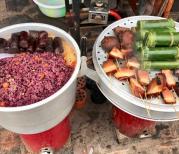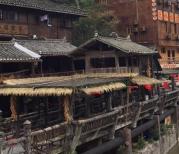 并无多大颠簸的到达西江千户苗寨,这个据说已有点商业化但又有点原生态的最大的苗寨吸引了很多人前往。今天也迎来了我们这一群十人的队伍,因是春节期间还是游人算少的。车在2小时后在西江停车场停下,然后就是背包进入。先是看见一张进寨的地图,找好自己的位置和将要去进餐的地方,如此可寄放下包后再游逛。只因是春节期间营业的饭馆很少,只在依山而建的旺旺农家乐找到了能吃饭的地方。穿过进村的一座木桥才算进寨了,只见整个寨子有一条溪流贯穿着,沿着溪水两边自有一些木建筑,也许是新建的,看上去比较新。玉米穗子沉甸甸的垂挂在屋檐上很有一种喜悦的味道,表示了收获后的成果。穿过村中的一座风雨桥,沿着老街找到上山的路,以往在电视