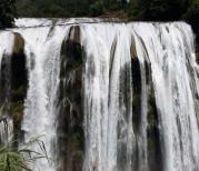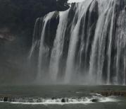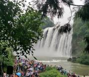 黄果树大瀑布果然名不虚传,去时为工作日,未入景区,便见人山人海,可见其爆棚人气。进得景区,先是穿过一处盆景园,之后乘坐自动扶梯往下,出扶梯,远远就可听见水声轰轰,近观之,白练如泻,从天而来,气势非凡。据介绍,黄果树大瀑布水量最充沛的时节是在七八月份,此时雨量丰富,因此瀑布水流湍急。而正是由于水量太大,因此夹杂有大量泥沙,水体也呈黄色,观赏效果不算最佳。而九月的黄果树,水量较七八月略少,但比其他时节又多,不失飞瀑气势,水色又清澈白净,此时游赏,恰逢其时。