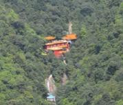 王仙岭风景区飞瀑和泉流最值得一看,负氧离子高,容易肚子饿。坐落在半山腰上的亭台楼阁很不错,要是在云雾缭绕山间的时候登山,恐怕就能品位到秦观的那首踏莎行中描述的“雾失楼台”的韵味来了。可惜近1000米的高度,只准我们爬到500米高的样子,去不到山顶。