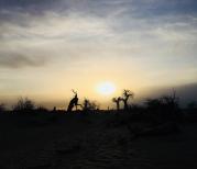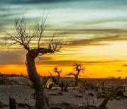 额济纳怪树林要傍晚的时候去,日落打在诡异的树干上,太震撼了。如果是秋天,胡杨的叶子都是金黄的,在夕阳的照射下,大片一样的效果。