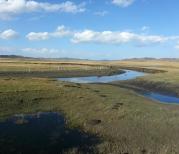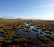 若尔盖草原算值得一去的地方,家里人都很满意,值了! 诺尔盖草原。车沿着诺尔盖草原行驶 ,和连绵起伏的桑科草原相比,诺尔盖草原大而无边际。据说诺盖尔草原是我国五大草原之一,属喀哈尔乔湿地自然保护区的主要地段。车子停了下来,广袤的草原一片金黄色,天蓝得深邃,雪山白的圣洁,在阳光的照射下,金黄色的草地有着丝绒般的质地。秋末初冬的草原黄色似金,,草原上散落着羊群,星罗棋布,像是一片会移动的白色山石。草原给人留下的印象是浓得化不开的厚重。