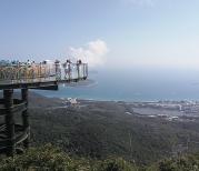 初到亚龙湾热带天堂森林公园,坐在公园半敞开式的“过山车”上,随着海拔的不断升高,我所期待的亚龙湾一点一点在眼前呈现,不一样的高度不一样的视角,看到的景色也不一样,层峦叠嶂的树木如亚龙湾的面纱般被慢慢揭开,那一弯湛蓝的月牙形浮现在眼前,安然沉睡,静谧优雅。它的美在延伸,从山林延伸到海边,从郁郁葱葱的绿树延伸到碧波荡漾的大海,这是绿与蓝的对接,是活力四射的自然生命到“善利万物而不争”的流水的过渡。