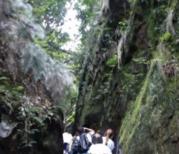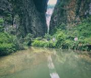 龙水峡与天生三桥一脉相连,如果不走回头路,那么这里是出坑必经之路,如果说天坑震撼雄壮,那龙水峡地缝便负责萌~ 这条地缝目测怎么也得有个四、五公里远近,全程都是泉水流瀑挂壁,极为难得。 仰望但见壁立千仞,天光曦微;俯身掬水湿面,温润如玉沁人心脾~ 这一路走来,较平坦处有木质栈道,险峻处碎石满地。伴我左右的便是潺潺小溪,溪水因乱石、地势而异向,不疾不徐。 身处谷底,仰视天小,路转峰回,远树白云,俯仰之间,不由暗生柳暗花明之感~ 古人为景起名喜爱象形,尤其长江流域,那真是处处歧义,但据我所见,景观真如其名的并不多,大部分都极为牵强。龙水峡不同,这里的每处景观所起名称一眼可见,极为形象--龙潭映月、银