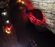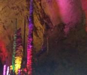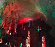 黄龙洞也是张家界一大奇观️️溶岩洞里自然形成的岩石岩柱千奇百怪️️有点吓人️️洞外30多度洞内16度️️是避暑的好地方️️洞内环绕着响水河有游船可以环游,灯光效果特别棒️游览的人很多,不然会怕怕️️