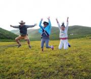 从川主寺到若尔盖大草原,距离140公里左右,我们没有到若尔盖,是在途中叫乃力台的一个地方欣赏了高原大草原的风景。当满目沧远的绿色铺面而来,辽阔的草原上还点缀着星星点点的帐篷和牛群,看着这样的景色,所有的尘世烦恼都洗涤一空,留下的是清香的绿色和广阔的心胸。