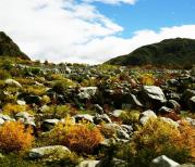 时间关系,舍弃了2个景点而坚决保留了来古冰川,事实证明,没错。 不说一路的无边秋色,就是站在最高观景台面对来古冰川的那一刻,一切都是值得的。 秋色映衬下的来古冰川,远比我们想象的冰清玉洁更令人着迷。来古村静静地依偎在群山的怀抱里,冰川在不远处暗自涌动,默默地与村子相望相守。 景区前后两个冰川观景台。上面一个更往里走,在更高处,景观很壮美。但下面一个离冰川更近,能更多地看到冰川融化后的真实场景。
